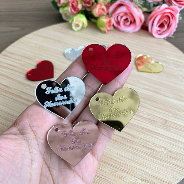Pingente Acrílico “Feliz Dia dos Namorados” – Coração 4cm (10 Unidades)